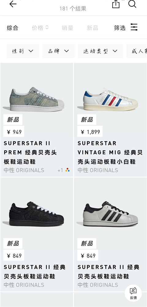 1、打开阿迪达斯官方APP,在【分类】中浏览查看商品类别。