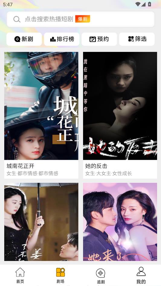 剧场页面提供了最新短剧预约、实时排行榜等功能,帮助快速筛选热门短剧。
