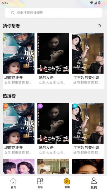 打开软件进入首页,在这里会根据用户的历史观看记录以及爱好推荐相关短剧资源。