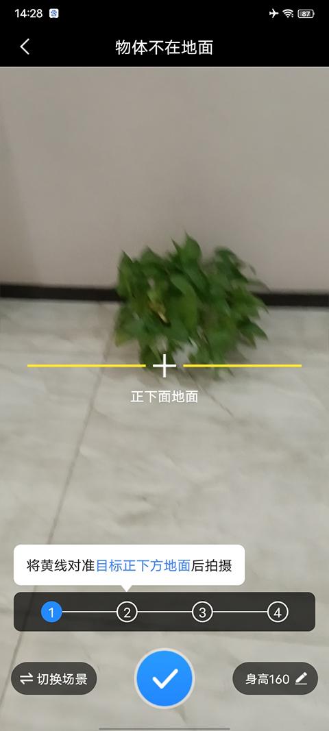 3、把黄色的线对准地面拍一张。