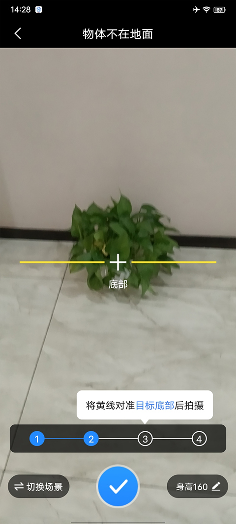 5、在将黄色线对准物体顶部拍一张。