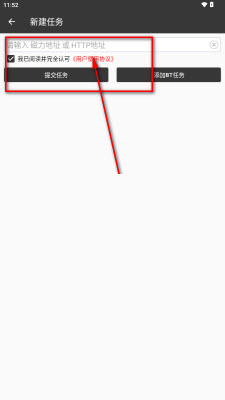 3.在其中将其他来源复制的磁力地址或hppt地址粘贴;