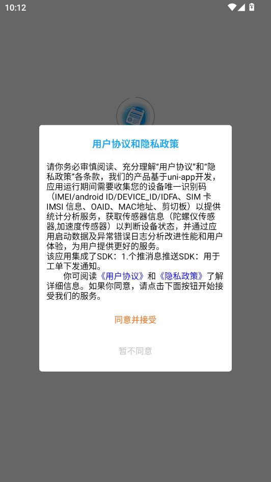 阅读用户协议和隐私政策,点击同意并接受。