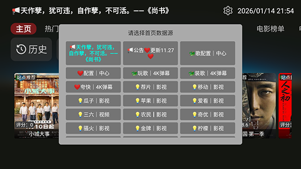 4、软件会自动返回首页开始加载,首次加载需要等几分钟,点击左上角的影视源可以进行切换。