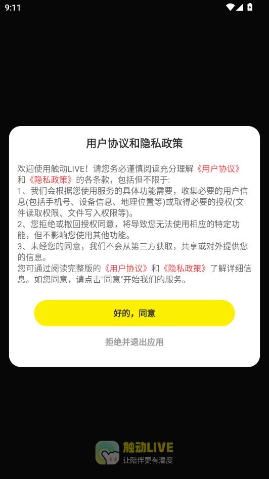 阅读用户协议和隐私政策,点击好的,同意。