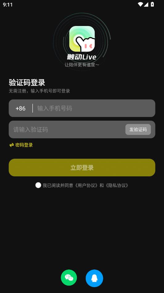 输入手机验证码点击立即登录,系统会自动注册。