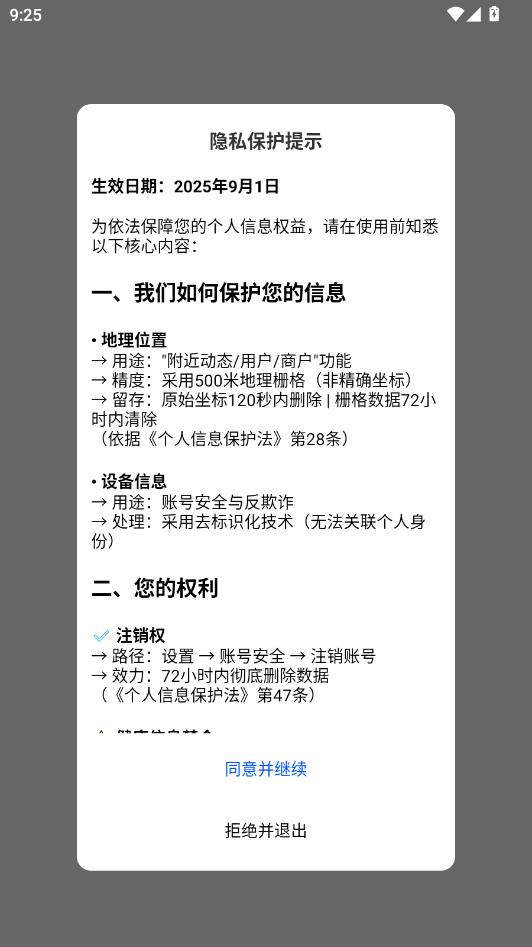 阅读隐私保护协议,点击同意并继续。