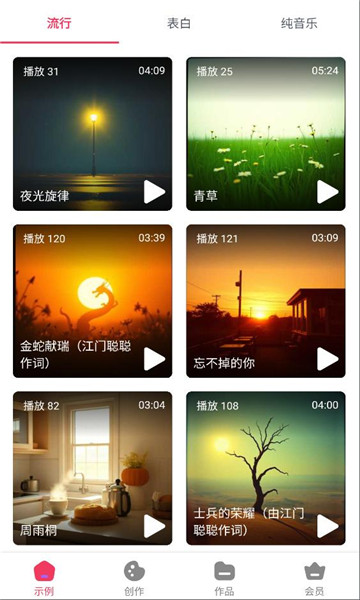 - 纯音乐模式:一键制作优美的旋律。