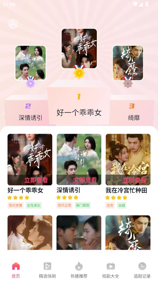在精选快刷页面,会根据用户的历史观看喜好推荐类似的短剧。