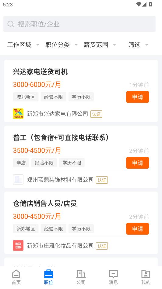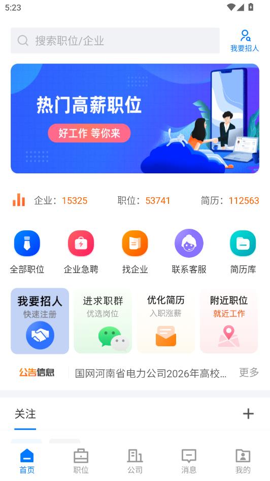 进入首页后可以看到这里提供了许多岗位信息。
