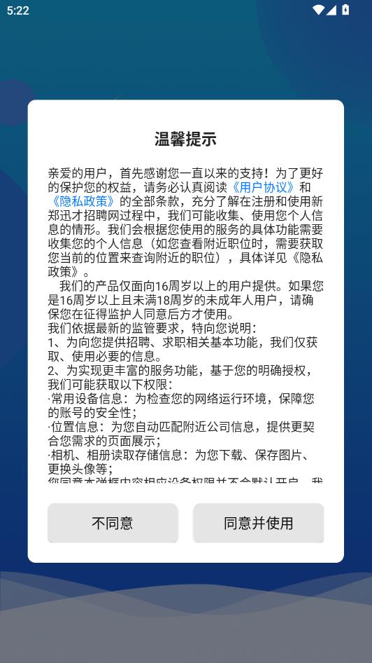 阅读温馨提示,点击同意并使用。
