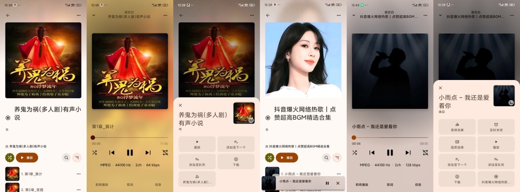 听歌和听小说的界面如下