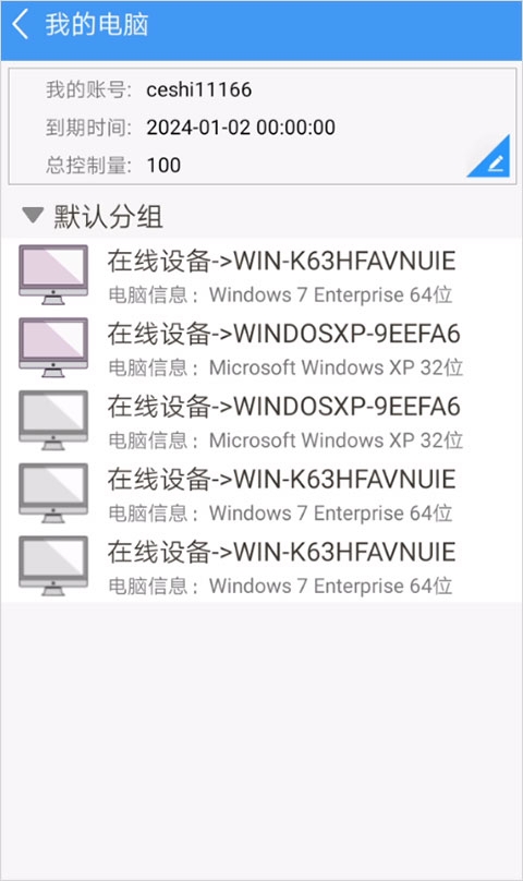 3、选择你需要控制的电脑设备。