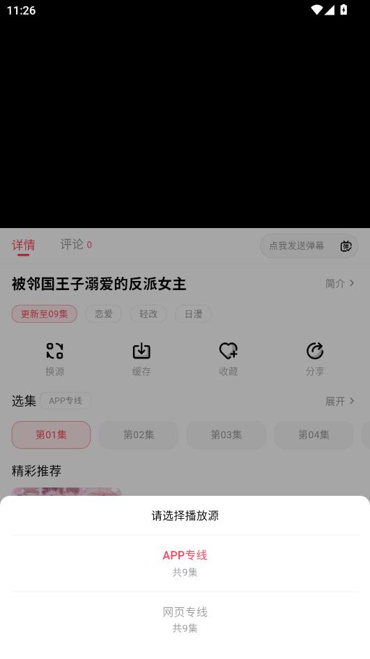 点击换源,这里提供了两个播放源可以选择。