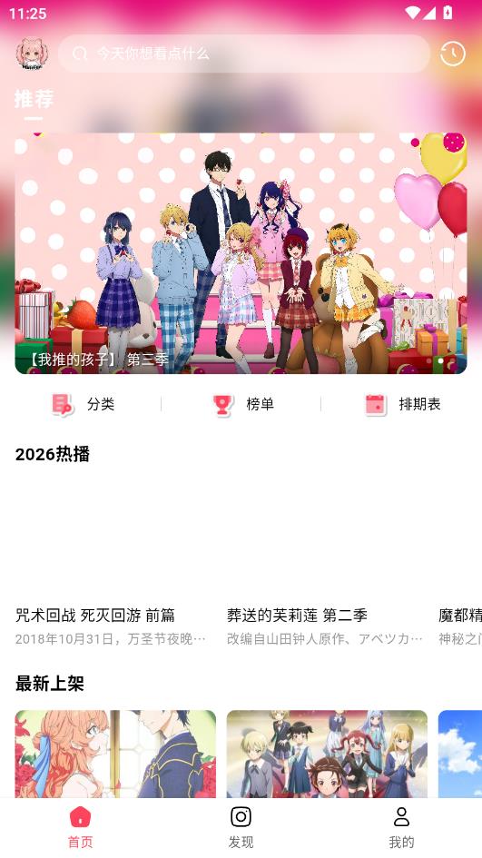 进入首页,这里推荐了许多热门新番可以观看。