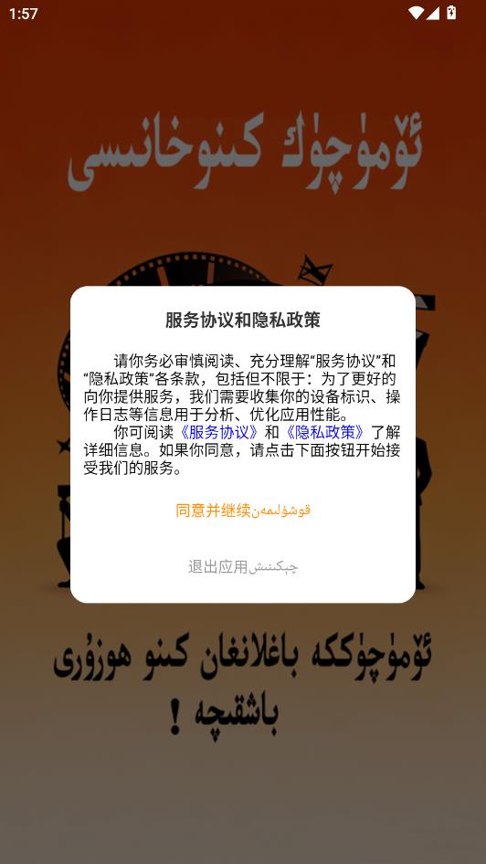阅读服务协议和隐私政策,点击同意并继续。