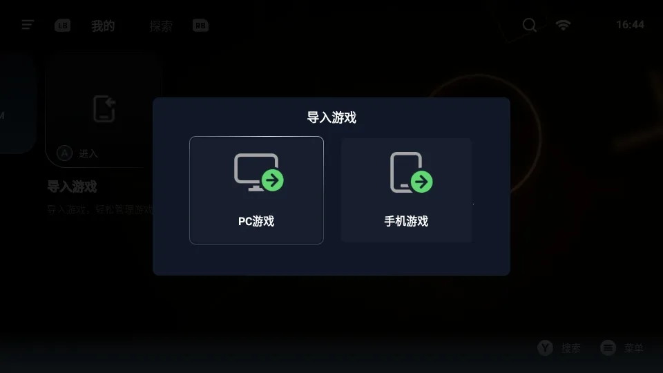 3、这个时候,界面上提供了两种选择,可以选择导入pc游戏或者手机游戏。
