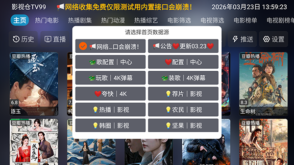 3、软件会自动重启,点击主页选项可以更换首页影视源。