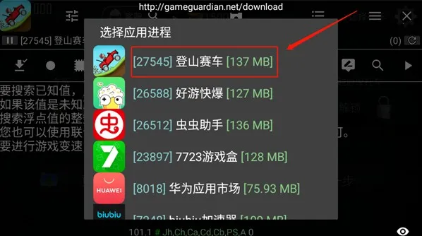 5、点击《GG修改器》悬浮窗,选择《登山赛车》。