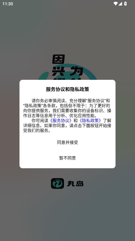 阅读服务协议和隐私政策,点击同意并接受。