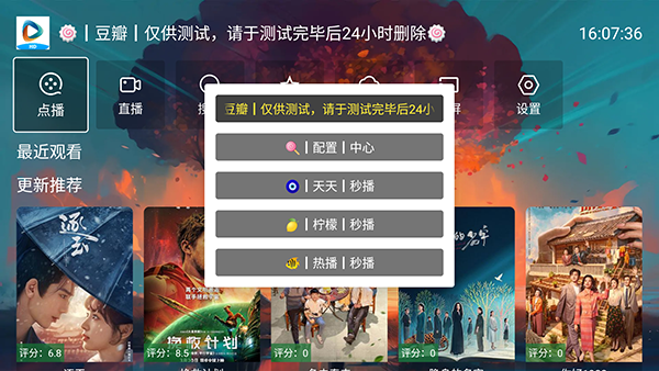 1、软件自带影视源接口配置,首次打开时加载时间很长,大概5-6分钟,点击左上角的影视源可以进行切换。