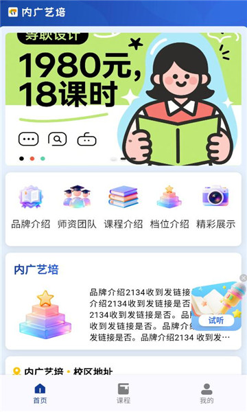 内广艺培app是由内蒙古广电专为少儿推出的口才培训平台,主要提供了教师端和家长端,涵盖了品牌介绍,课程介绍,师资团队等一系列内容,可以方便家长为孩子找到合适的培训平台,也方便机构管理和教学。