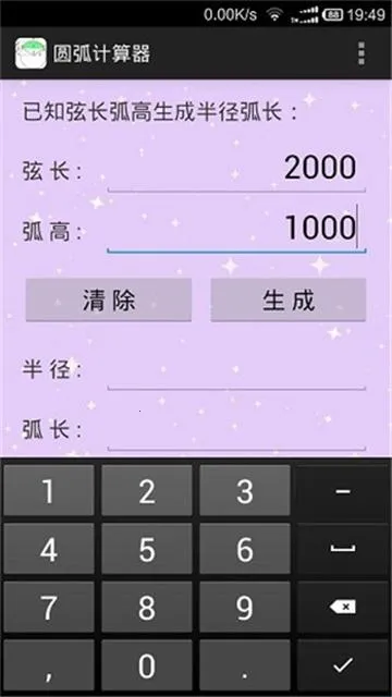 4、输入相应的数值后点击生成,整个过程十分迅速,你可以轻松地得到半径和弧长的数据。