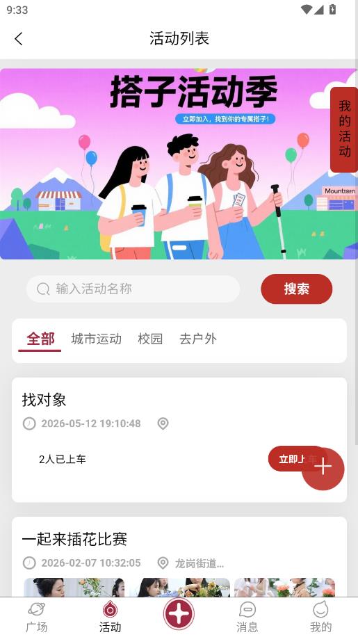 在这里可以看到各种各样的活动,可以根据自己的兴趣点击立即上车,需要注意时间地点。