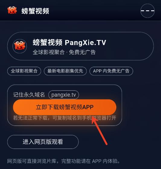 螃蟹视频是一款专为影视爱好者打造的聚合型在线观影平台,致力于提供海量高清影视资源与流畅无广告的观看体验,无需会员即可畅享热门电影、电视剧、综艺及动漫内容。