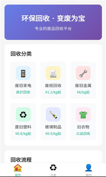 智能预约上门:用户只需在App内填写回收物品的类型、预估重量和上门地址,系统便会智能匹配并指派附近的回收员,省去了寻找回收站的麻烦。