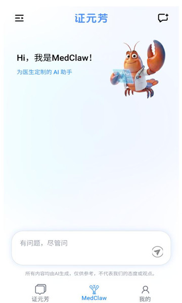 证元芳—MedClaw:面向医学人士的定制化、免安装、更安全、自带海量医学技能的智能体,是医生的全能医学助理。