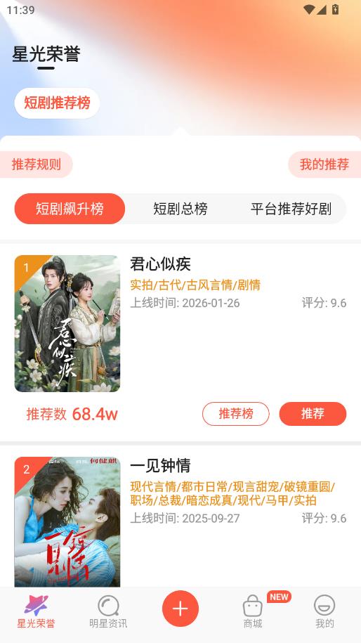 剧查查粉丝版app是款专门为剧查查app明星粉丝打造的社区平台,专注于短剧明星,在这里不仅可以查看最新动态资讯,还能够与艺人进行亲密互动,独创以粉丝团为单位的竞技激励机制,能够帮爱豆增加排名哦!