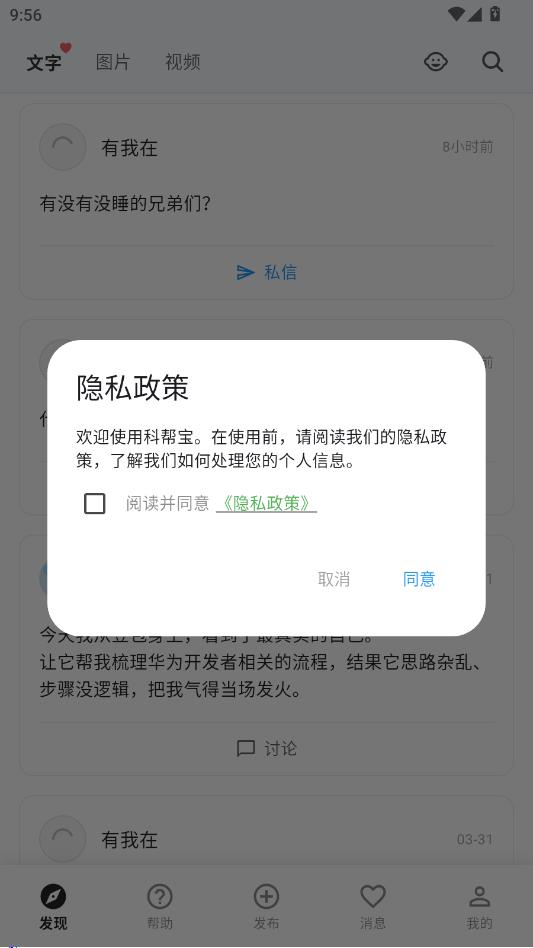 阅读隐私政策,点击同意。