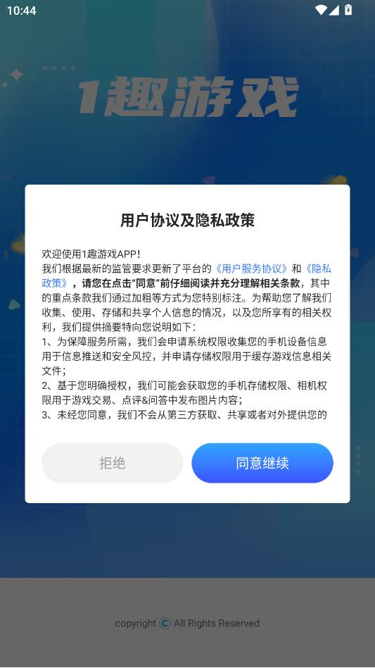 阅读用户协议及隐私政策,点击同意并继续。