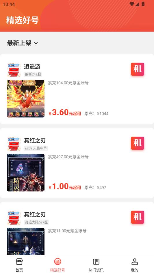 点击精选好号,点击最新上架可以多维度筛选账号。