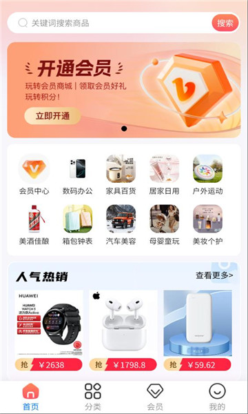 积分兑换商城:提供海量商品,用户可使用累积的积分直接兑换心仪的好物,覆盖数码、家居、母婴等多个板块。