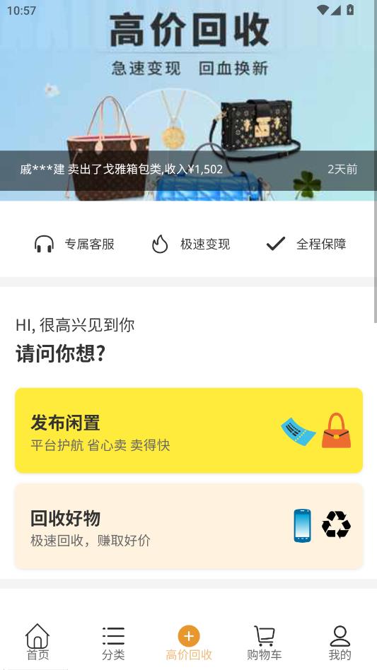 进入首页点击高价回收。