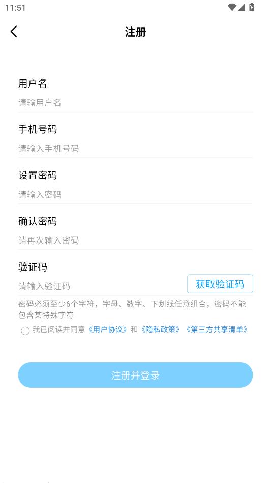 输入信息,点击注册并登录。