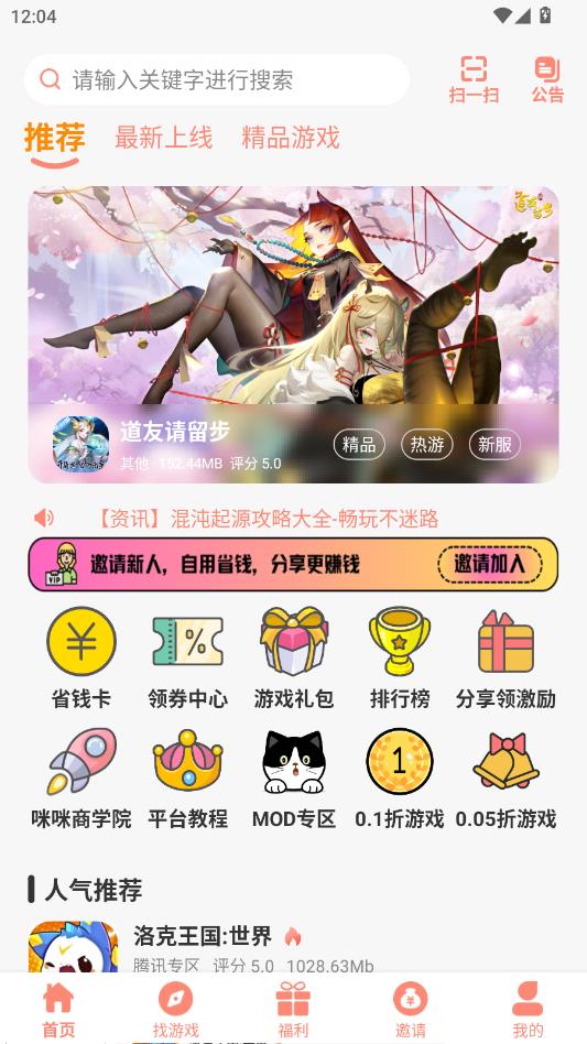 咪咪派mimipaw是款集成海量热门手游的游戏盒子,包括最新上线的洛克王国世界以及即将上线的王者荣耀世界等,各种类型题材这里应有尽有,都是可以免费下载体验的,并且还提供了丰富的福利可以领取。