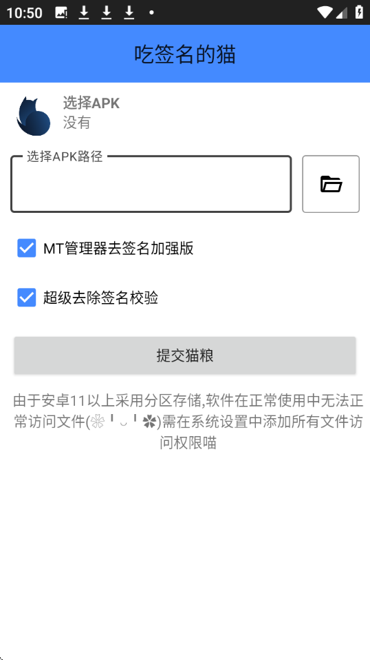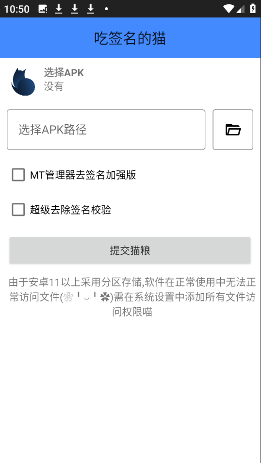 吃签名的猫怎么用?这是一款专注于APK文件签名处理的系统工具类应用。它的核心定位是简化APK去签名的流程,帮助用户轻松绕过安卓系统的签名验证机制。无论是进行APK的二次开发、测试还是修改,这款软件都能为用户提供便利。