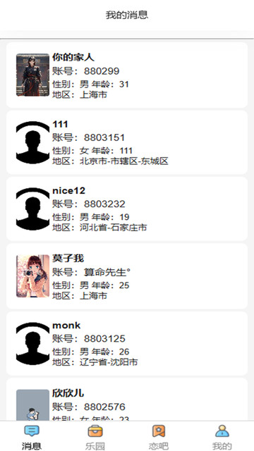 可以在乐园和恋吧中寻找喜欢的对象,在消息中畅聊。