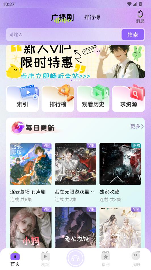 1.打开潮生FM,在首页浏览推荐的听书、广播剧内容。