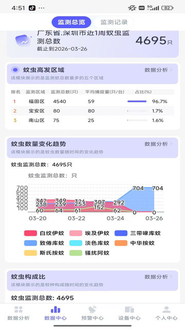 星小尘app是款由中国疾控中心协同研发的监测平台,它集成了ai、大数据以及物联网等多项先进技术,实现了从人工蚊虫监测到全天候、自动化AI智能监测的转型,其预警准确率能够高达99.6%,监测覆盖率更是达到100%。