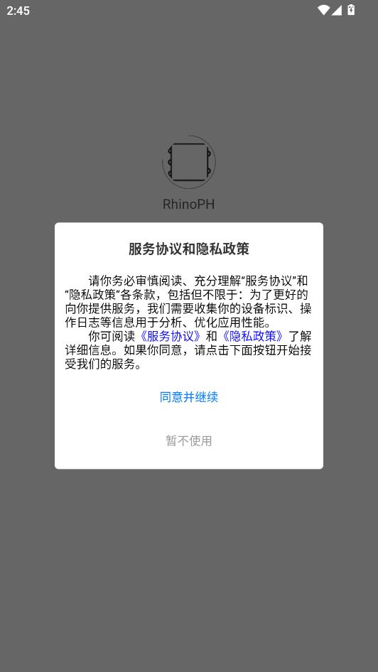 阅读服务协议和隐私政策,点击同意并继续。