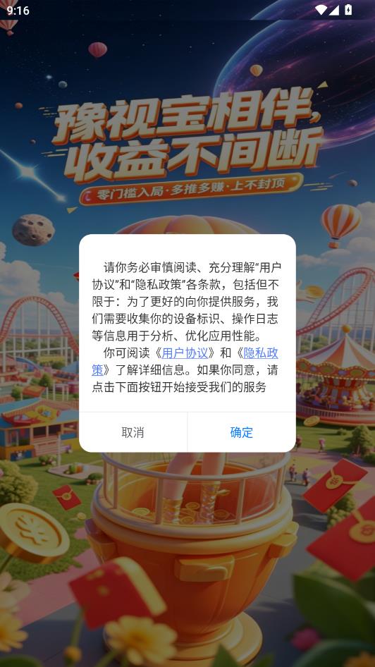 豫视宝app是款可以享受多元福利赚钱的软件,用户可以通过看广告、邀请好友以及参与活动等多种方式获取对应的收益,多劳多得,可以直接提现到绑定的微信号上,新用户更是提供了新手福利领取哦!