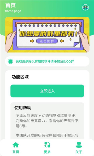 电竞游戏天赋测试app是一款可以帮你测试游戏天赋的趣味软件,主要是通过反应速度和动态视觉双维度测评等方式来帮你了解自己的电竞潜力,还可以给你评分和建议,感兴趣的快来试试吧。