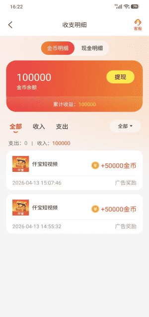 观看平台推送的广告内容,完成曝光或互动任务后获得相应金币。