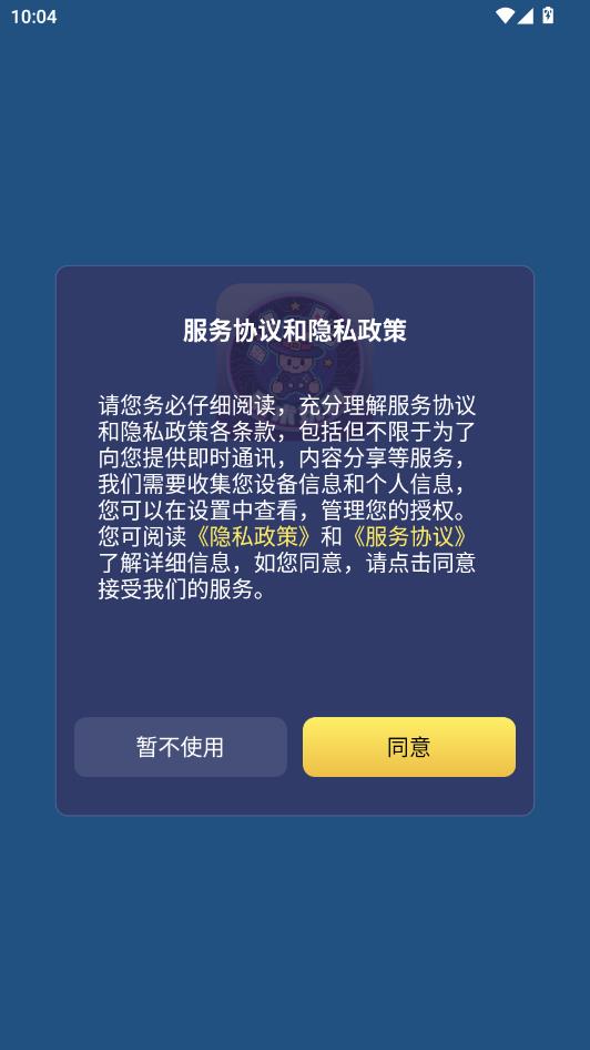 阅读服务协议和隐私政策,点击同意。