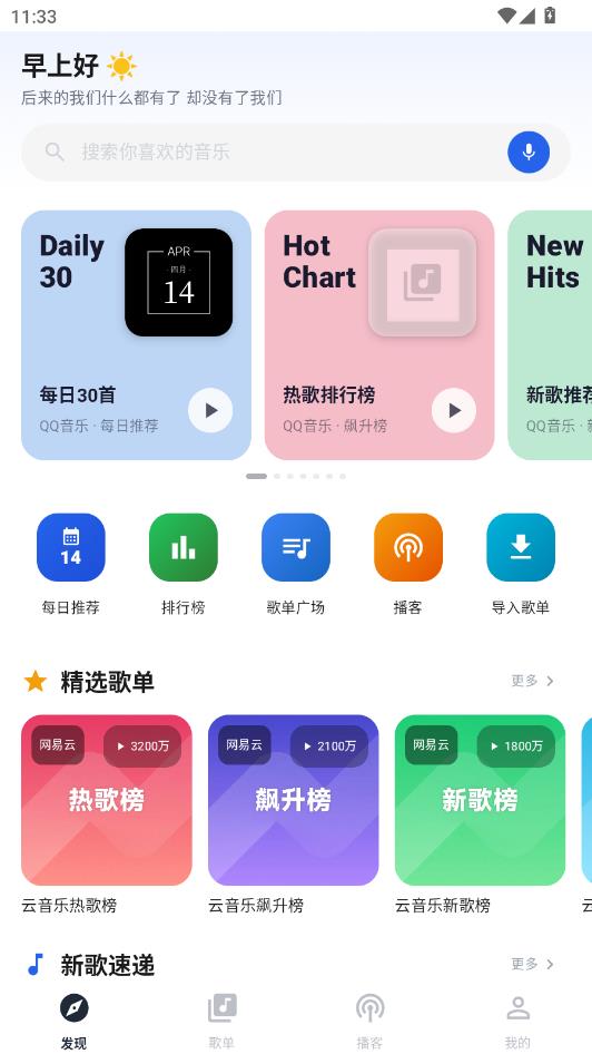 带来的全新版云音乐附带音源软件,其聚合了多个主流音乐平台的资源,不仅提供了各类实时榜单,还可以通过歌名、歌手、MV等多种方式搜索,快速寻找喜欢的歌曲播放,享受高品音质体验。