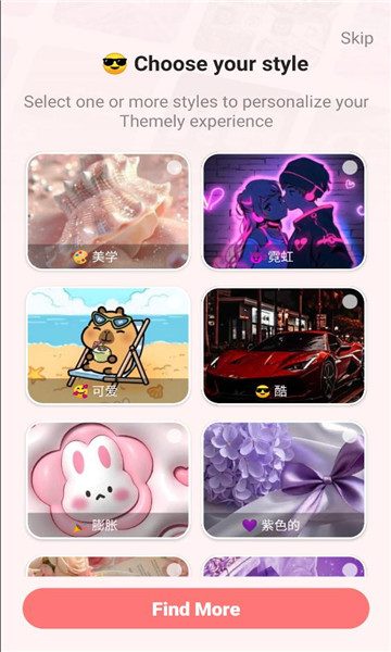 多风格精准匹配:不论你是喜欢清新萌宠、热血动漫,还是硬核韩系潮流,Themely 都能通过智能算法精准匹配你的独特审美,推荐专属风格内容。